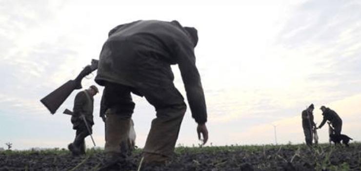 ‘Go ahead, make my day’, lijkt de man met de buks te denken, als er een haas op hem afrent. Ze zijn lekker een dagje aan het jagen, de leden van Het Hut Syndicaat (85 min.). Een groep drijvers met honden heeft de dieren over het perceel gejaagd. Aan de andere kant van het veld staan hun kameraden te wachten, met het geweer in de aanslag.