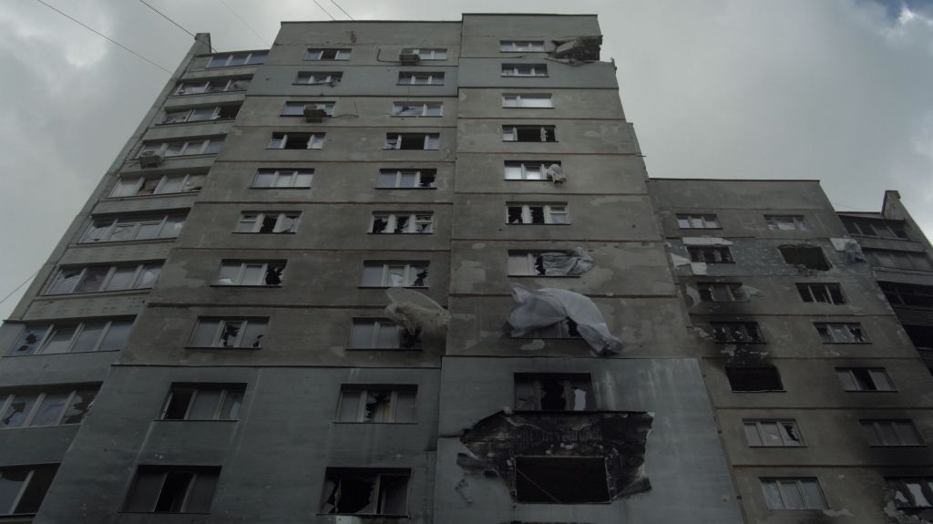 Zhurba observeert slechts. De oorlog in de oorlog – en de verbondenheid die daardoor ook ontstaat. In haar imposante film wordt niet geschoten en vallen geen bommen. Althans, niet zichtbaar. Zij toont wat de oorlog aanricht, zonder de strijd zelf te tonen. Net als Sergei Loznitsa onlangs deed in de al even indrukwekkende documentaire The Invasion. De kapotgeschoten huizen en voertuigen, de lamgeslagen bewoners en dappere functionarissen. Een ontzield of juist opnieuw bezield land.