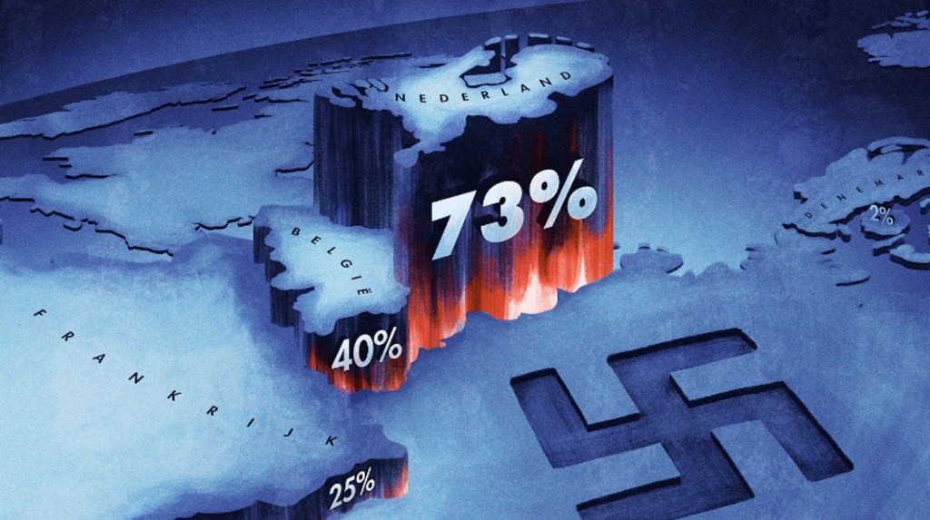 Feit is dat die ons land met een collectieve schuld opzadelde. Die kon heel lang weggedrukt worden met het waanbeeld dat half Nederland tijdens de Tweede Wereldoorlog in het verzet had gezeten, maar moest uiteindelijk toch schoorvoetend worden erkend.